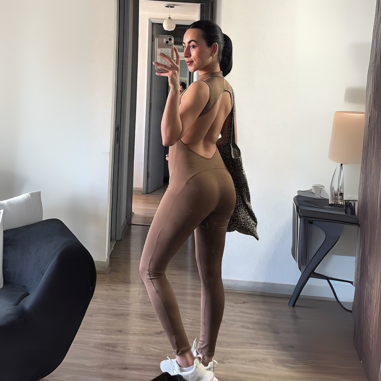 - Enterizo Deportivo sin mangas con espalda abierta, perfecto para tus Gym Outfits o alguna salida casual.